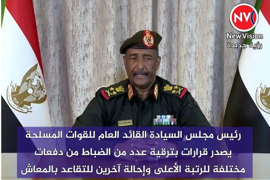 رئيس مجلس السيادة القائد العام للقوات المسلحة يصدر قرارات بترقية عدد من الضباط من دفعات مختلفة للرتبة الأعلى وإحالة آخرين للتقاعد بالمعاش