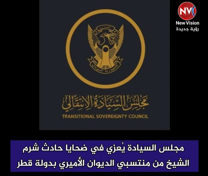 أعرب مجلس السيادة الإنتقالي عن تعازيه الحارة لحكومة وشعب قطر الشقيق في ضحايا الحادث المروري من منتسبي الديوان الأميري والذين استشهدوا اليوم في مدينة شرم الشيخ بجمهورية مصر العربية أثناء أدائهم لمهام رسمية