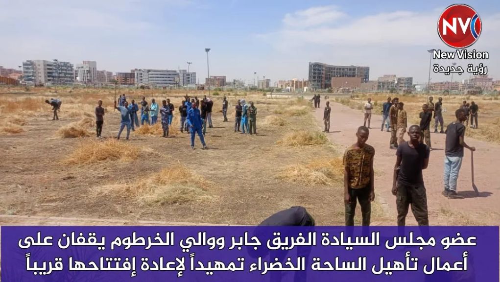 تفقد الفريق بحري مهندس إبراهيم جابر إبراهيم عضو مجلس السيادة رئيس اللجنة العليا لتهيئة البيئة لعودة مواطني ولاية الخرطوم يرافقه والي الخرطوم الأستاذ أحمد عثمان حمزة الساحة الخضراء بالخرطوم بحضور الأمين العام لحكومة الولاية والمدير التنفيذي لمحلية الخرطوم وذلك للوقف على أعمال التأهيل واعادتها للخدمة لتكون متنفساً للمواطنين