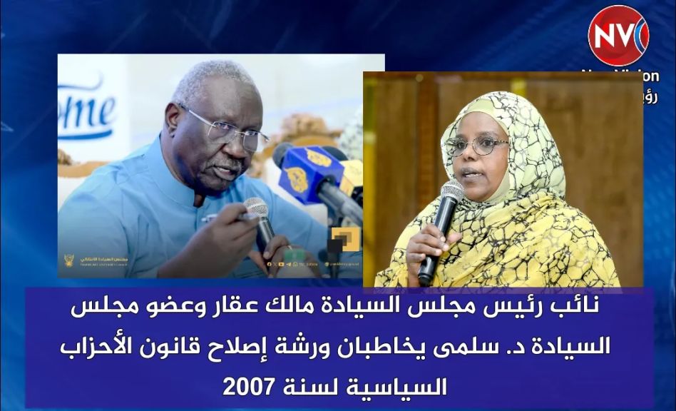 خاطب نائب رئيس مجلس السيادة القائد مالك عقار إير و د. سلمى عبد الجبار المبارك كل على حده ورشة إصلاح قانون الأحزاب السياسية لسنة 2007 والتي نظمها مجلس الأحزاب السياسية بمدينة بورتسودان تحت شعار "نحو قانون لبناء أحزاب وطنية من أجل تداول سلمي للسلطة"
