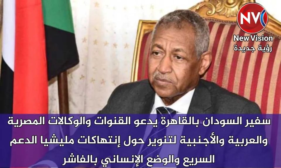 سفير السودان بالقاهرة يدعو القنوات والوكالات المصرية والعربية والأجنبية لتنوير حول إنتهاكات مليشيا الدعم السريع والوضع الإنساني بالفاشر